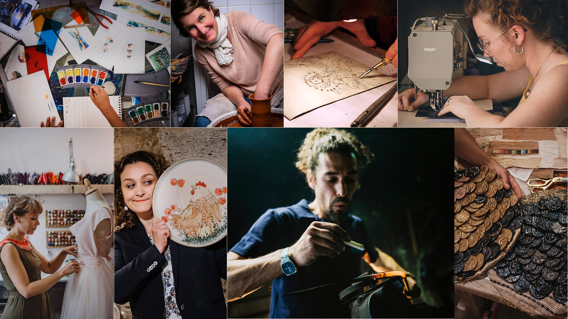Celles-ci sont accompagnées d’un portrait retraçant le parcours de l’artisan et mettant en lumière la singularité de son métier. Une porte d’entrée dans leur univers, que les visiteurs sont invités à prolonger en partant à la découverte des ateliers, situés à proximité. Céramique, verre, bois, métal, textile, papier, plumes, argile polymère… Renouvelée chaque année, la sélection de matières et techniques d’exception reflète la diversité et de la vitalité de la création contemporaine locale.